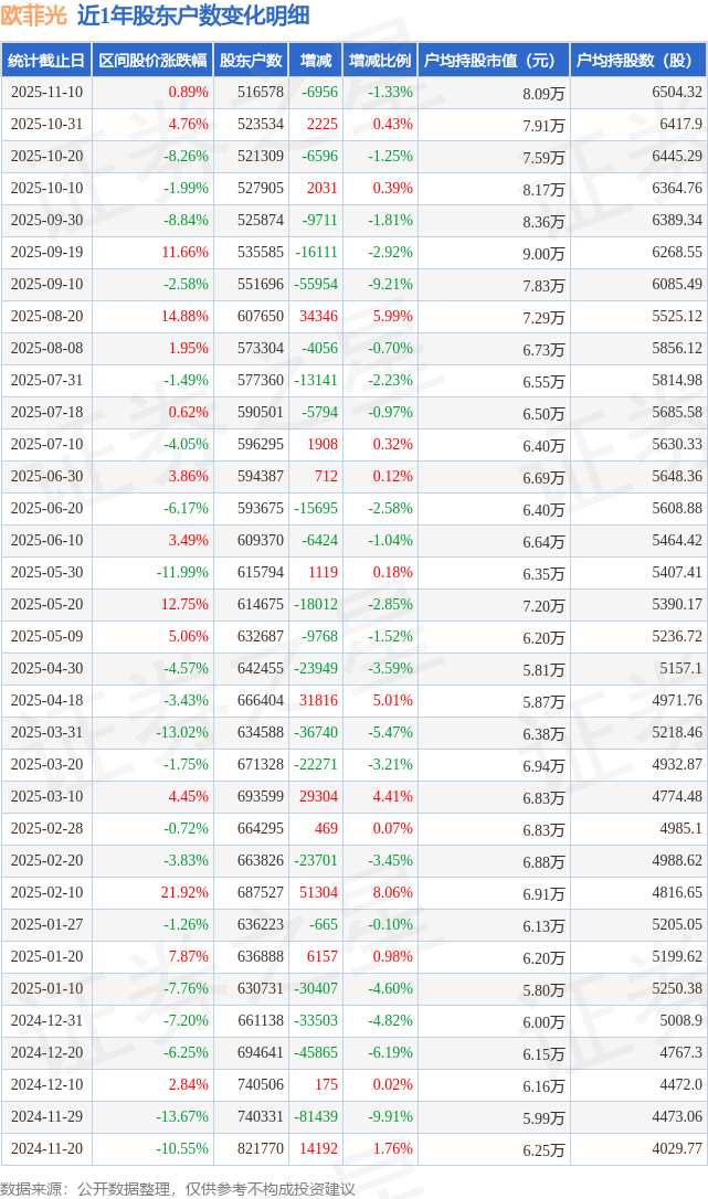 从股价来看,2025年10月31日至2025年11月10日,欧菲光区间涨幅为0.89%,在此期间股东户数减少6956.0户,减幅为1.33%。