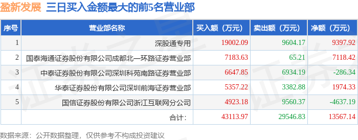 从龙虎榜公布的三日买卖数据来看,北向资金合计净买入9397.92万元。