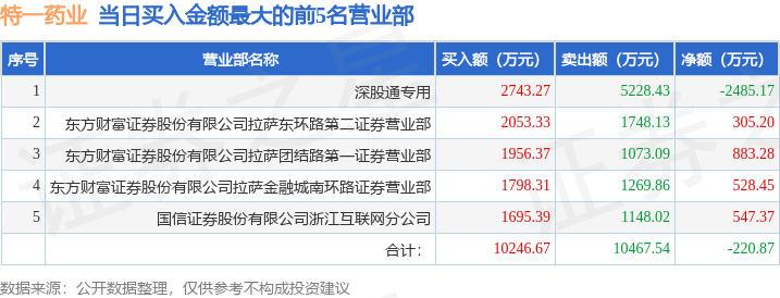 证券之星消息,沪深交易所2025年11月17日公布的交易公开信息显示,特一药业(002728)因日换手率达到20%的前5只证券登上龙虎榜。此次是近5个交易日内第4次上榜。