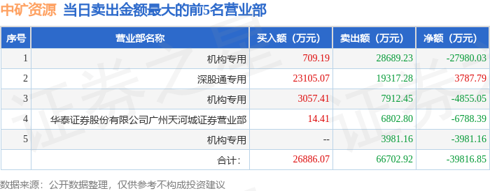 证券之星消息,沪深交易所2025年11月17日公布的交易公开信息显示,中矿资源(002738)因日涨幅偏离值达到7%的前5只证券登上龙虎榜。此次是近5个交易日内第1次上榜。