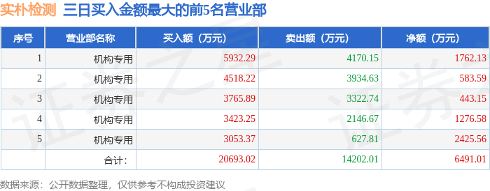 从龙虎榜公布的三日买卖数据来看,机构合计净买入6980.58万元。