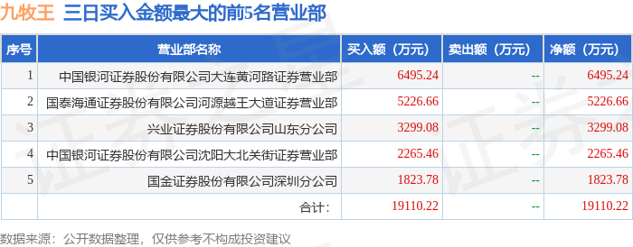 从龙虎榜公布的三日买卖数据来看,机构合计净卖出1583.32万元,北向资金合计净卖出1535.42万元。陈小群、越王大道等知名游资榜上有名。(知名游资陈小群一般指中国银河证券股份有限公司大连黄河路证券营业部席位、知名游资越王大道一般指国泰海通证券股份有限公司河源越王大道证券营业部席位、知名游资陈小群一般指中国银河证券股份有限公司沈阳大北关街证券营业部席位,根据市场资料整理,仅供参考)