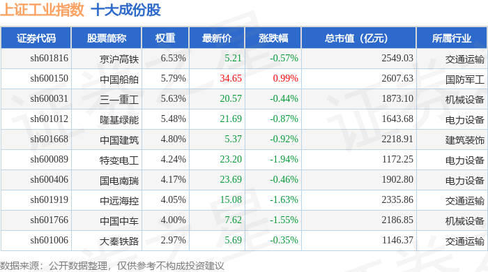 资金流向方面,上证工业(000034)指数成份股当日主力资金净流出合计21.8亿元,游资资金净流入合计3.44亿元,散户资金净流入合计18.35亿元。成份股资金流向详情见下表: