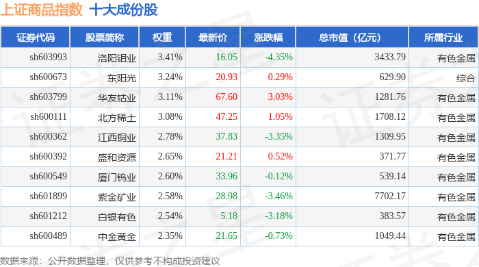 证券之星消息,11月17日,上证商品(000066)指数报收于3471.77点,跌0.28%,成交635.95亿元,换手率0.75%。当日该指数成份股中,上涨的有26家,恒力石化以3.77%的涨幅领涨,下跌的有24家,洛阳钼业以4.35%的跌幅领跌。