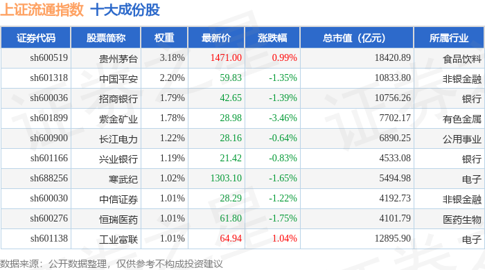 上证流通(000090)指数十大成份股详情如下: