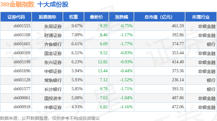380金融(000110)指数十大成份股详情如下: