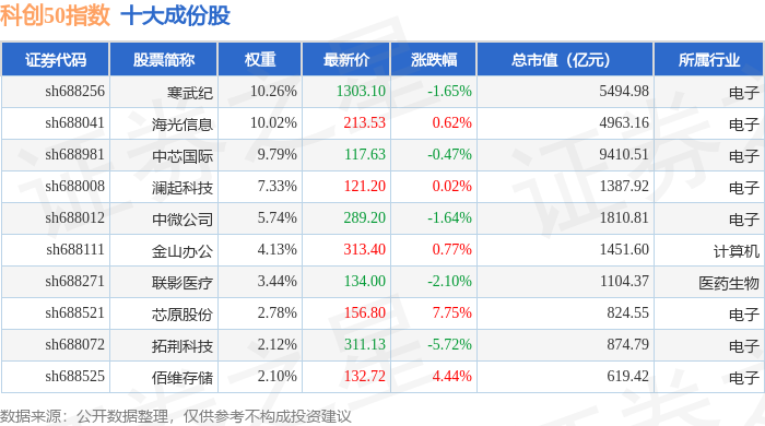 证券之星消息,11月17日,科创50(000688)指数报收于1354.04点,跌0.53%,成交595.42亿元,换手率1.73%。当日该指数成份股中,上涨的有16家,芯原股份以7.75%的涨幅领涨,下跌的有34家,九号公司以6.43%的跌幅领跌。