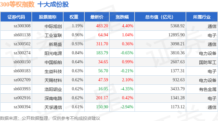证券之星消息,11月17日,300等权(000984)指数报收于4661.75点,跌0.47%,成交4389.4亿元,换手率0.58%。当日该指数成份股中,上涨的有83家,三六零以10.01%的涨幅领涨,下跌的有213家,康龙化成以5.34%的跌幅领跌。