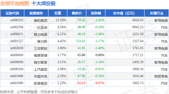 全指可选(000989)指数十大成份股详情如下: