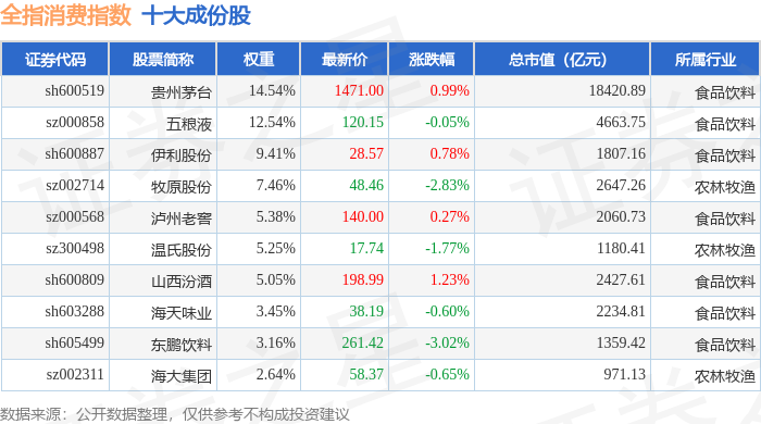 资金流向方面,全指消费(000990)指数成份股当日主力资金净流出合计9.07亿元,游资资金净流入合计2.09亿元,散户资金净流入合计6.98亿元。成份股资金流向详情见下表: