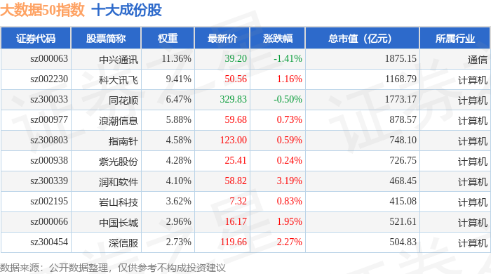 资金流向方面,大数据50(399282)指数成份股当日主力资金净流出合计4.9亿元,游资资金净流出合计1821.02万元,散户资金净流入合计5.08亿元。成份股资金流向详情见下表:
