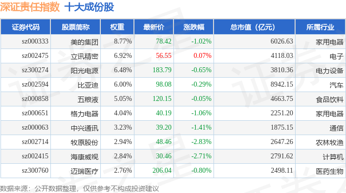 证券之星消息,11月17日,深证责任(399341)指数报收于1694.33点,跌0.22%,成交981.17亿元,换手率1.37%。当日该指数成份股中,上涨的有37家,天齐锂业以9.87%的涨幅领涨,下跌的有63家,普蕊斯以4.82%的跌幅领跌。