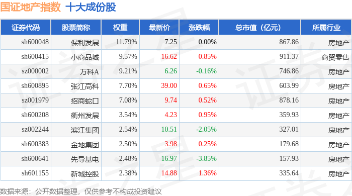 国证地产(399393)指数十大成份股详情如下: