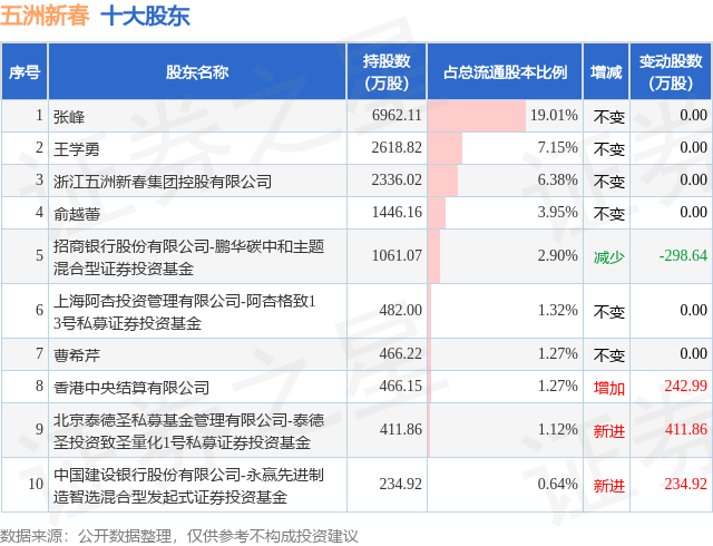 根据五洲新春2025年三季报公布的十大股东详情如下: