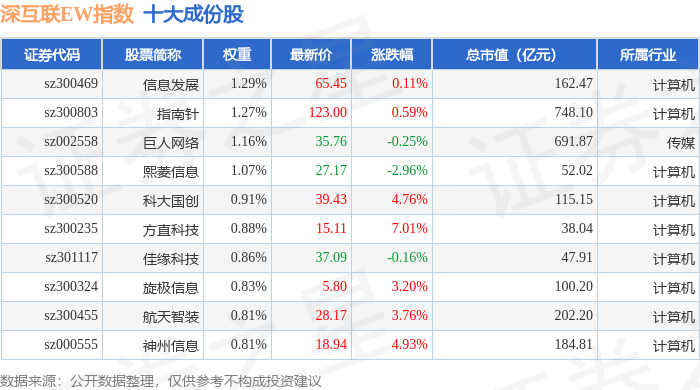 资金流向方面,深互联EW(399677)指数成份股当日主力资金净流入合计15.23亿元,游资资金净流出合计6.48亿元,散户资金净流出合计8.75亿元。成份股资金流向详情见下表: