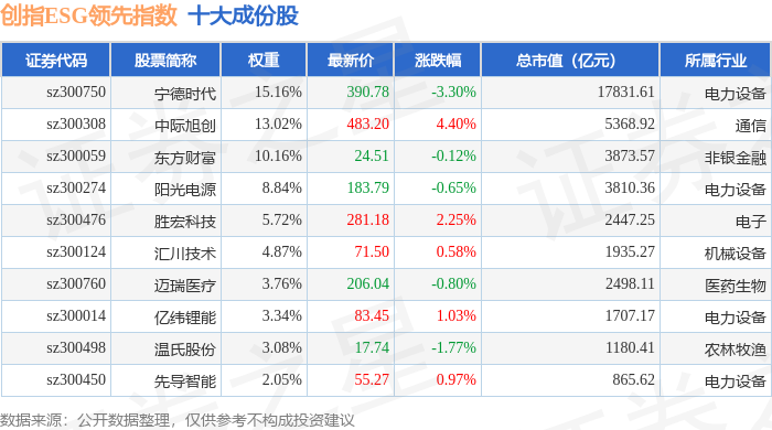 资金流向方面,创指ESG领先(970031)指数成份股当日主力资金净流出合计42.19亿元,游资资金净流入合计9.32亿元,散户资金净流入合计32.88亿元。成份股资金流向详情见下表: