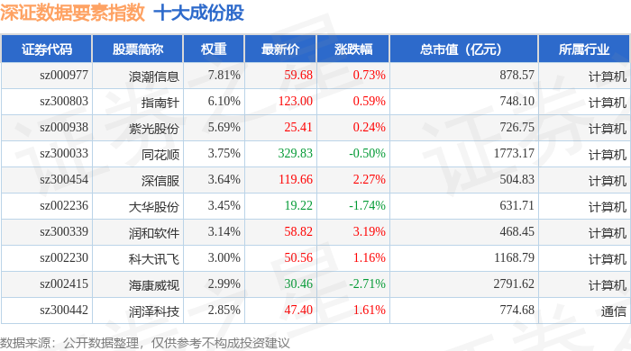 深证数据要素(970053)指数十大成份股详情如下: