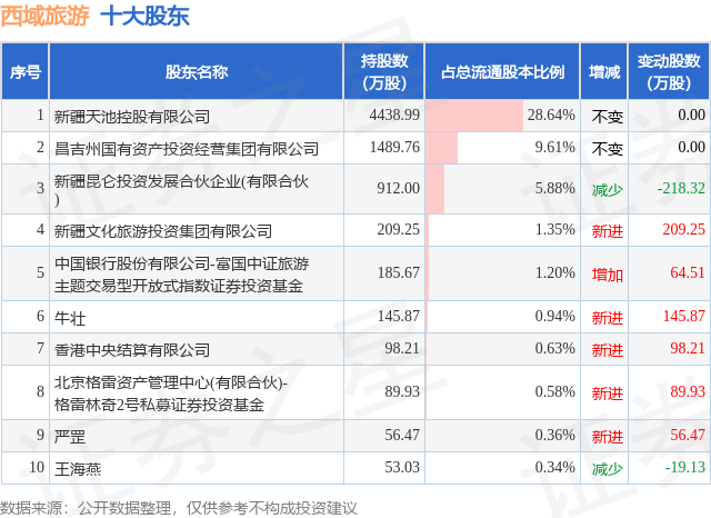 根据西域旅游2025年三季报公布的十大股东详情如下: