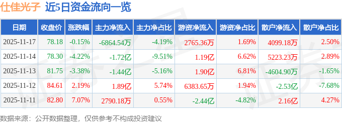 证券之星消息,截至2025年11月17日收盘,仕佳光子(688313)报收于78.18元,下跌0.15%,换手率4.62%,成交量21.19万手,成交额16.4亿元。