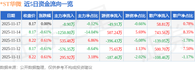 证券之星消息,截至2025年11月17日收盘,*ST华微(600360)报收于8.17元,上涨0.0%,换手率0.96%,成交量9.21万手,成交额7513.89万元。