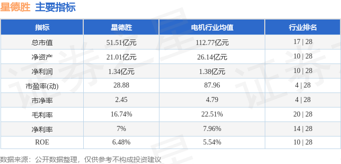 该股主要指标及行业内排名如下: