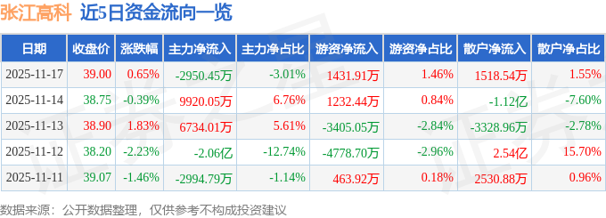 证券之星消息,截至2025年11月17日收盘,张江高科(600895)报收于39.0元,上涨0.65%,换手率1.63%,成交量25.22万手,成交额9.8亿元。