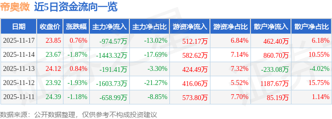 证券之星消息,截至2025年11月17日收盘,帝奥微(688381)报收于23.85元,上涨0.76%,换手率1.65%,成交量3.16万手,成交额7487.42万元。