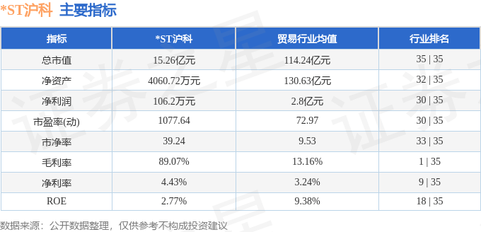 *ST沪科2025年三季报显示,前三季度公司主营收入544.03万元,同比下降63.7%;归母净利润106.2万元,同比上升448.84%;扣非净利润-23.72万元,同比下降231.31%;其中2025年第三季度,公司单季度主营收入104.0万元,同比下降56.95%;单季度归母净利润102.71万元,同比上升260.26%;单季度扣非净利润6.88万元,同比上升110.47%;负债率65.94%,财务费用180.67万元,毛利率89.07%。*ST沪科(600608)主营业务:大宗商品贸易。