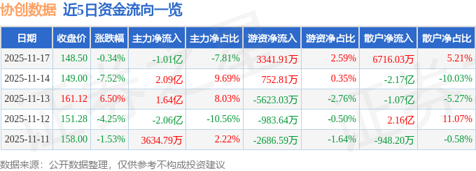 证券之星消息,截至2025年11月17日收盘,协创数据(300857)报收于148.5元,下跌0.34%,换手率2.51%,成交量8.65万手,成交额12.89亿元。