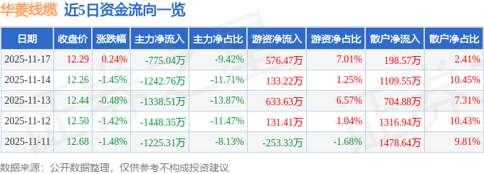 证券之星消息,截至2025年11月17日收盘,华菱线缆(001208)报收于12.29元,上涨0.24%,换手率2.55%,成交量6.73万手,成交额8228.98万元。