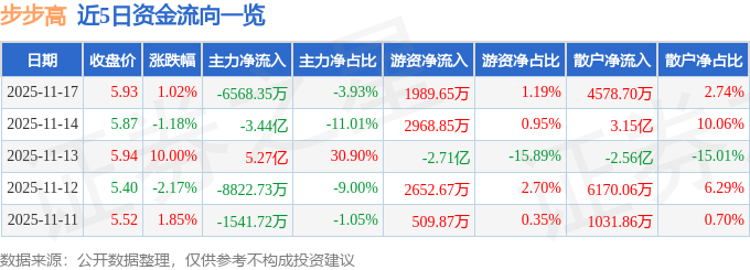 证券之星消息,截至2025年11月17日收盘,步步高(002251)报收于5.93元,上涨1.02%,换手率13.11%,成交量282.09万手,成交额16.73亿元。