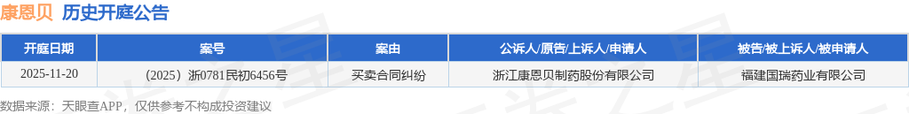 证券之星消息,根据天眼查APP显示,近日公布了一则浙江康恩贝制药股份有限公司作为原告/上诉人的开庭公告,详细内容如下: