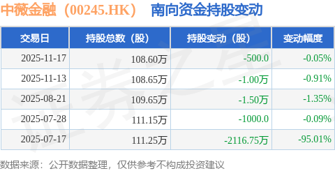 证券之星消息,11月17日南向资金减持500.0股中薇金融(00245.HK)。近5个交易日中,获南向资金减持的有5天,累计净减持2119.4万股。近20个交易日中,获南向资金减持的有20天,累计净减持1.12亿股。截至目前,南向资金持有中薇金融(00245.HK)108.6万股,占公司已发行普通股的0.05%。