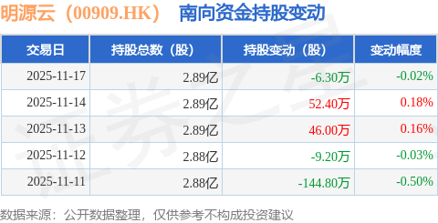 证券之星消息,11月17日南向资金减持6.3万股明源云(00909.HK)。近5个交易日中,获南向资金减持的有3天,累计净减持61.9万股。近20个交易日中,获南向资金增持的有14天,累计净增持1318.5万股。截至目前,南向资金持有明源云(00909.HK)2.89亿股,占公司已发行普通股的14.94%。