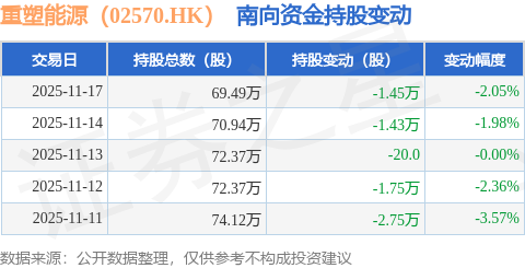 证券之星消息,11月17日南向资金减持1.45万股重塑能源(02570.HK)。近5个交易日中,获南向资金减持的有5天,累计净减持7.38万股。近20个交易日中,获南向资金减持的有16天,累计净减持12.97万股。截至目前,南向资金持有重塑能源(02570.HK)69.49万股,占公司已发行普通股的1.2%。