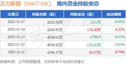 证券之星消息,11月17日南向资金减持2.01万股正力新能(03677.HK)。近5个交易日中,获南向资金增持的有2天,累计净增持41.64万股。近20个交易日中,获南向资金增持的有16天,累计净增持2126.31万股。截至目前,南向资金持有正力新能(03677.HK)4202.94万股,占公司已发行普通股的2.82%。