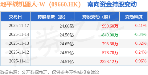 证券之星消息,11月17日南向资金增持999.6万股地平线机器人-W(09660.HK)。近5个交易日中,获南向资金增持的有4天,累计净增持3848.88万股。近20个交易日中,获南向资金增持的有17天,累计净增持2.49亿股。截至目前,南向资金持有地平线机器人-W(09660.HK)24.66亿股,占公司已发行普通股的16.82%。
