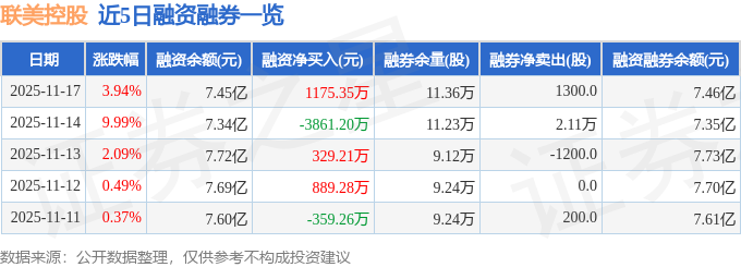 联美控股融资融券信息显示,融资方面,当日融资买入7232.99万元,融资偿还6057.64万元,融资净买入1175.35万元。融券方面,融券卖出1300.0股,融券偿还0.0股,融券余量11.36万股,融券余额107.92万元。融资融券余额7.46亿元。
