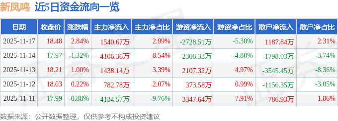 证券之星消息,截至2025年11月17日收盘,新凤鸣(603225)报收于18.48元,上涨2.84%,换手率1.84%,成交量27.87万手,成交额5.15亿元。