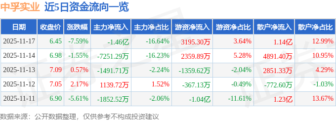 证券之星消息,截至2025年11月17日收盘,中孚实业(600595)报收于6.45元,下跌7.59%,换手率3.33%,成交量133.3万手,成交额8.77亿元。