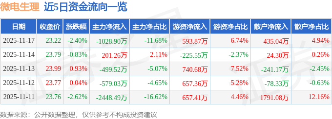 证券之星消息,截至2025年11月17日收盘,微电生理(688351)报收于23.22元,下跌2.4%,换手率3.02%,成交量3.78万手,成交额8812.81万元。