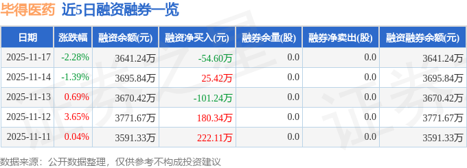 毕得医药融资融券信息显示,融资方面,当日融资买入540.27万元,融资偿还594.87万元,融资净偿还54.6万元。融券方面,融券卖出0.0股,融券偿还0.0股,融券余量0.0股,融券余额0.0万元。融资融券余额3641.24万元。