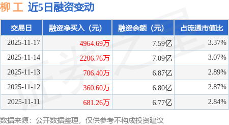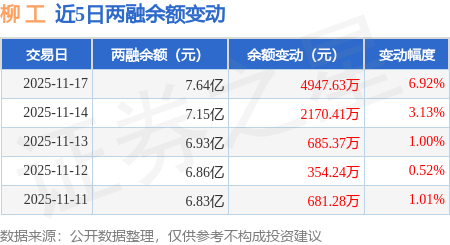 证券之星消息,11月17日,柳 工(000528)融资买入7586.32万元,融资偿还2621.62万元,融资净买入4964.69万元,融资余额7.59亿元,近3个交易日已连续净买入累计7877.85万元,近20个交易日中有11个交易日出现融资净买入。