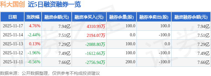 科大国创融资融券信息显示,融资方面,当日融资买入2.1亿元,融资偿还1.67亿元,融资净买入4310.99万元。融券方面,融券卖出100.0股,融券偿还0.0股,融券余量100.0股,融券余额0.39万元。融资融券余额7.94亿元。