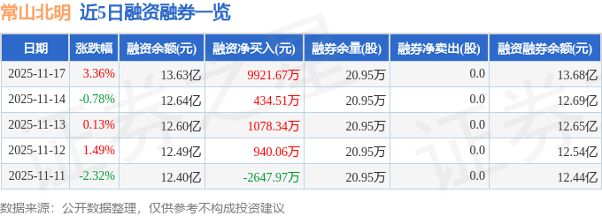 常山北明融资融券信息显示,融资方面,当日融资买入2.67亿元,融资偿还1.68亿元,融资净买入9921.67万元,连续3日净买入累计1.14亿元。融券方面,融券卖出0.0股,融券偿还0.0股,融券余量20.95万股,融券余额496.72万元。融资融券余额13.68亿元。