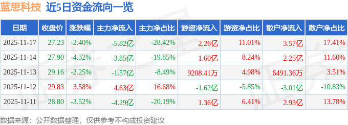 11月17日的资金流向数据方面,主力资金净流出5.82亿元,占总成交额28.42%,游资资金净流入2.26亿元,占总成交额11.01%,散户资金净流入3.57亿元,占总成交额17.41%。