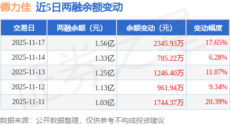 证券之星消息,11月17日,德力佳(603092)融资买入4233.54万元,融资偿还1887.61万元,融资净买入2345.93万元,融资余额1.56亿元,近3个交易日已连续净买入累计4377.55万元。