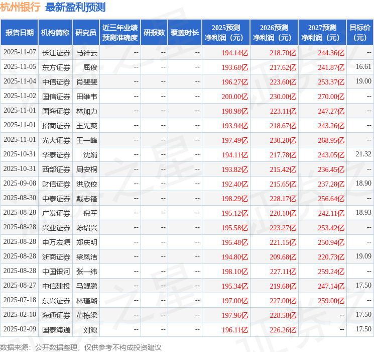 证券之星消息,2025年11月17日杭州银行(600926)发布公告称公司于2025年11月13日接受机构调研,国海证券、银华基金参与。