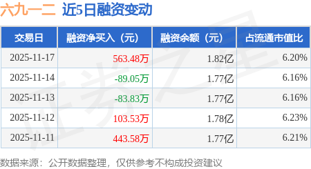 证券之星消息,11月17日,六九一二(301592)融资买入1460.0万元,融资偿还896.52万元,融资净买入563.48万元,融资余额1.82亿元。