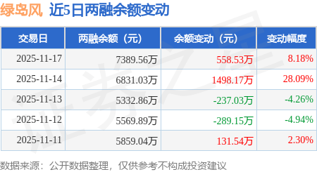 证券之星消息,11月17日,绿岛风(301043)融资买入942.14万元,融资偿还383.61万元,融资净买入558.53万元,融资余额7389.56万元。